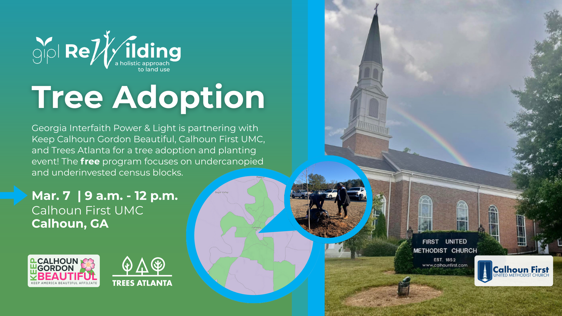 Celebrate the Jewish New Year of the Trees with GIPL, Adamah ATL, and Trees Atlanta as we work together to plant over 50 trees in a metro Atlanta park.