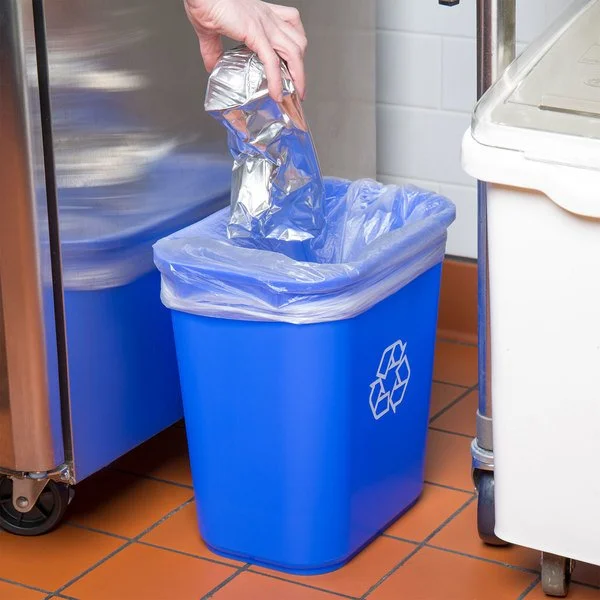 Lavex Janitorial 23 Gallon Blue Square Recycle Bin with Swing Lid
